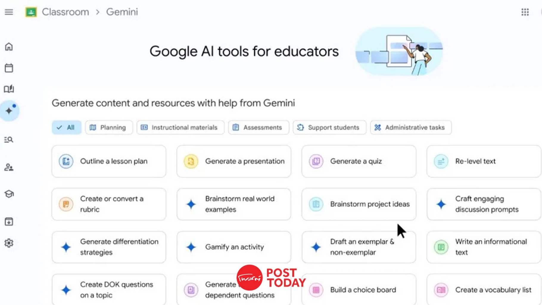 เริ่มจากการเพิ่ม Gemini ลงไปใน Google classroom ช่วยให้ครูสามารถเข้าถึงและใช้งานได้ง่ายขึ้น รองรับการพูดคุยสอบถาม จัดเตรียมบทเรียน ค้นคว้าเนื้อหาข้อมูล ตรวจสอบงาน สร้างแบบฝึกหัด ออกแบบสื่อการเรียนการสอน ช่วยงานเอกสารบางชนิด ไปจนการเขียนอีเมลอัตโนมัติด้วย AI