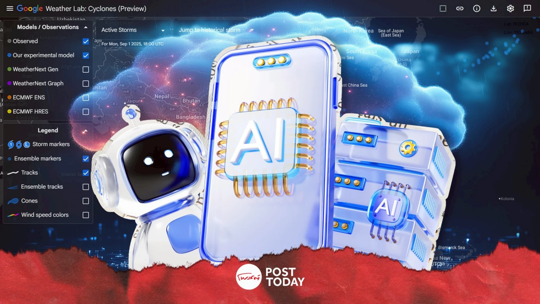 Weather Lab โมเดล AI ที่วิเคราะห์เส้นทางพายุล่วงหน้า 15 วัน