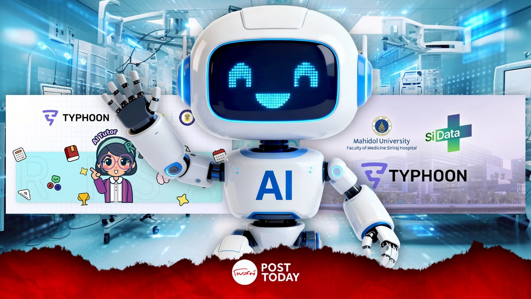 Typhoon AI ถูกใช้งานจริงในโรงพยาบาลศิริราชและ 300 โรงเรียนทั่วประเทศ ทั้งช่วยค้นข้อมูลทางแพทย์และตรวจข้อสอบอัตนัยอย่างแม่นยำ พร้อมยกระดับคุณภาพการเรียนรู้