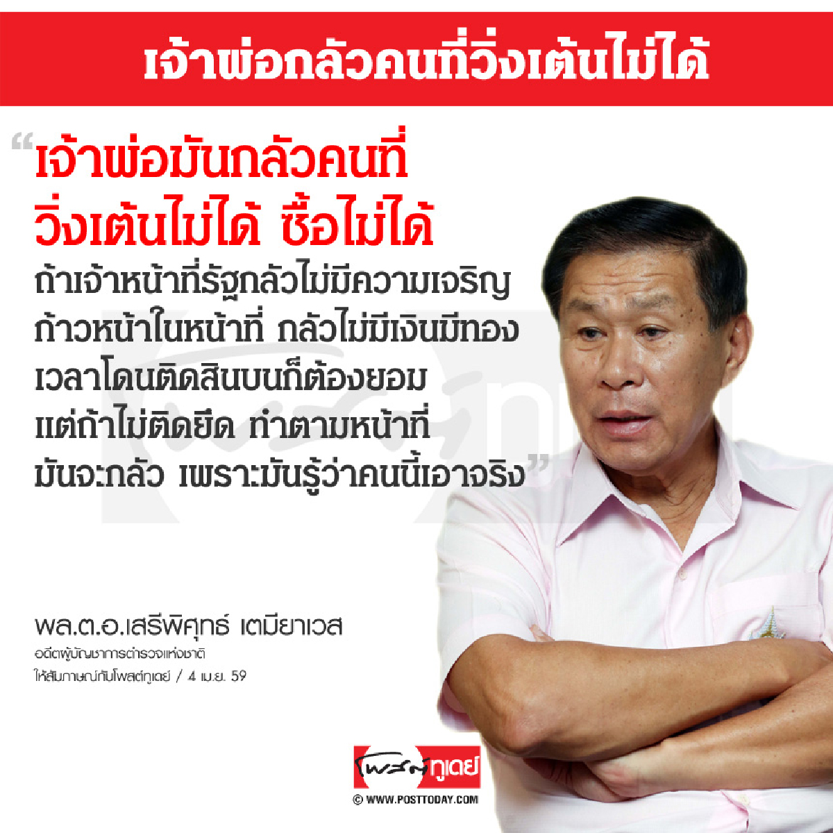 -พล.ต.อ.เสรีพิศุทธ์ เตมียาเวส อดีตผู้บัญชาการตำรวจแห่งชาติ ให้สัมภาษณ์กับโพสต์ทูเดย์ / 4 เม.ย. 59