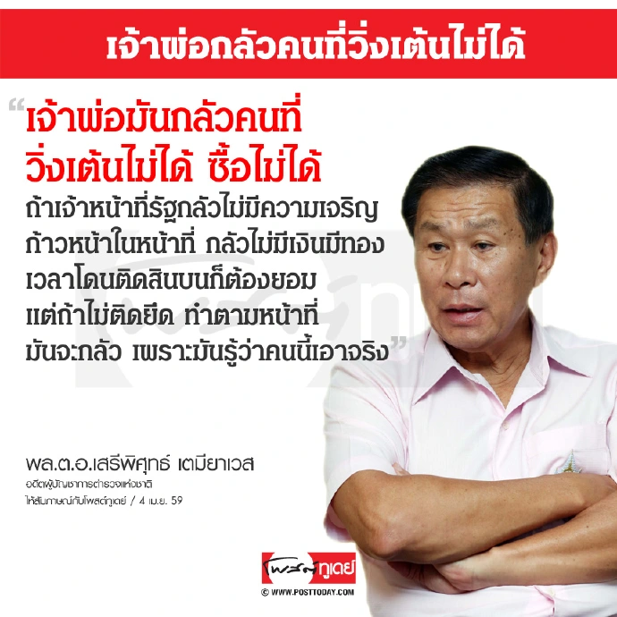 อ่านสัมภาษณ์พิเศษ :  "ถ้าไม่กลัว มาเฟียก็แค่ขี้ผง" พล.ต.อ.เสรีพิศุทธ์ เตมียาเวส