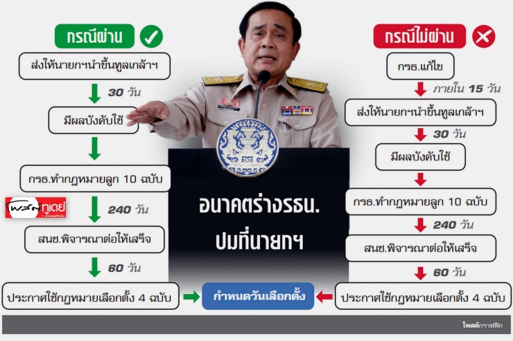 เมื่อร่าง พ.ร.บ.ประกอบรัฐธรรมนูญเกี่ยวกับการเลือกตั้ง 4 ฉบับ ได้แก่ การเลือกตั้ง สส. การได้มาซึ่ง สว. พรรคการเมือง และคณะกรรมการการเลือกตั้ง มีผลบังคับใช้ จะนำไปสู่การประกาศกำหนดวันเลือกตั้งภายใน 150 วันต่อไป