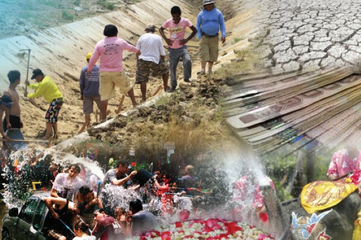 เมื่อภัยแล้งมาเยือนพร้อมๆ กับเทศกาลสงกรานต์ ทำให้ปีนี้ภาครัฐต้องรณรงค์เล่นน้ำช่วงสงกรานต์อย่างประหยัด ดังนั้นพื้นที่ขาประจำที่เคยเป็นพื้นที่จัดงานเทศกาลสงกรานต์สาดน้ำกันอย่างเมามัน ถือเป็นไฮไลต์เด็ดในแต่ละภูมิภาคก็ต้องปรับตัวตามสภาพน้ำ เช่นเดียวกับคนเล่นน้ำและคนขายอุปกรณ์การเล่นน้ำที่ต้องพร้อมรับมือการเล่นน้ำแบบฉบับประหยัดรับภัยแล้งไปด้วยกัน