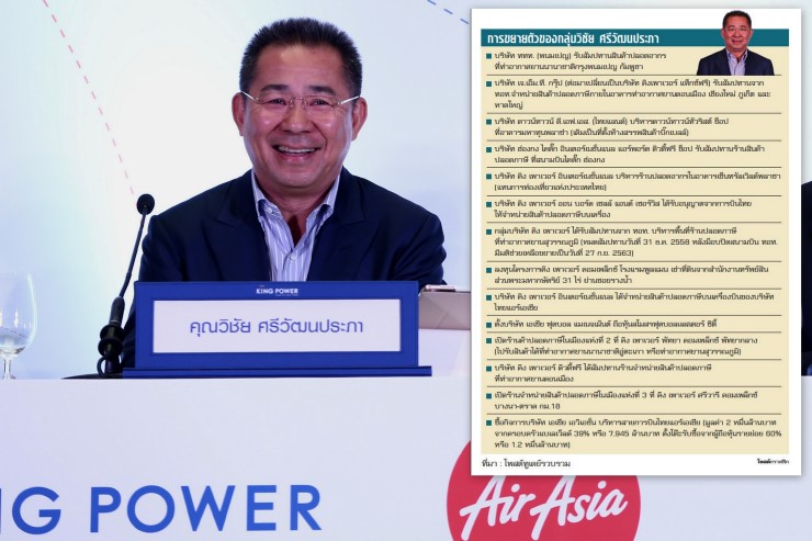 ถือเป็นครึ่งปีทองของเจ้าสัวแสนล้าน “วิชัย ศรีวัฒนประภา (รักศรีอักษร)” เจ้าพ่อ คิง เพาเวอร์ ซึ่งล่าสุดสร้างชื่อให้ดังยิ่งขึ้น ด้วยการซื้อกิจการไทยแอร์เอเชีย 2 หมื่นล้านบาท หลังจากไม่กี่เดือนที่ผ่านมาทีมเลสเตอร์ ซิตี้ ที่ซื้อมา สร้างประวัติศาสตร์ครั้งแรกตั้งแต่ตั้งสโมสรมากว่าร้อยปี ด้วยการคว้าแชมป์พรีเมียร์ลีก ทำให้มูลค่าทีม 40 ล้านปอนด์ เพิ่มขึ้นสิบเท่าตัว เป็น 400 ล้านปอนด์ หรือ 2 หมื่นล้านบาท เมื่อรวมกับธุรกิจหลัก ร้านปลอดภาษีที่ปีนี้จะทำรายได้กว่า 8.5 หมื่นล้านบาท และปีหน้าตั้งเป้าทะลุกว่า 1 แสนล้านบาท