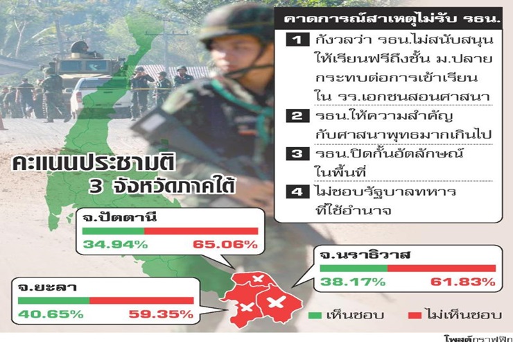ผลประชามติร่างรธน.มีผลคะแนนที่น่าสนใจอยู่ที่ 3 จังหวัดภาคใต้ ที่ส่วนใหญ่เป็นชาวมุสลิมพร้อมใจกันลงมติไม่รับร่างรัฐธรรมนูญ น่าสนใจว่าเกิดอะไรขึ้น