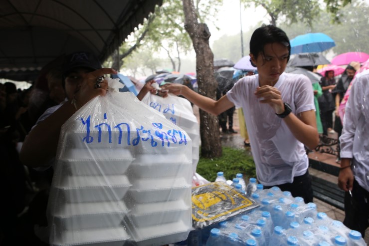 กลุ่มจิตอาสามาด้วยใจช่วยอำนวยความสะดวกและช่วยเหลือประชาชนที่มาร่วมสักการะพระบรมศพ