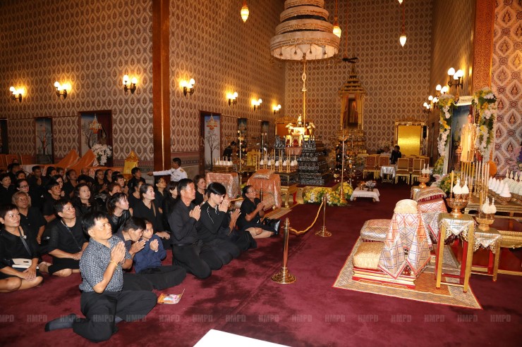 ปราโมทย์  อธิบายว่า เมื่อเข้าไปในพระบรมมหาราชวังเจ้าหน้าที่จัดแถวให้ประชาชนยืนหน้ากระดานเรียง 4 เมื่อใกล้พระที่นั่งดุสิตมหาปราสาทประมาณ 200 เมตรเจ้าหน้าที่จะขอความร่วมมือให้รวมเหลือ 2 แถว จากนั้นจะแจกถุงพลาสติกสีดำหรือสีขาว ไว้สำหรับให้ใส่รองเท้าถุงเท้าก่อนเข้าไปภายใน รวมถึงขอความร่วมมือปิดโทรศัพท์มือถือ และห้ามสะพายกระเป๋าแต่สามารถถือเข้าไปได้ ก่อนจะให้เดินเข้าไปพระที่นั่งดุสิตมหาปราสาทแถวละ 2 คน