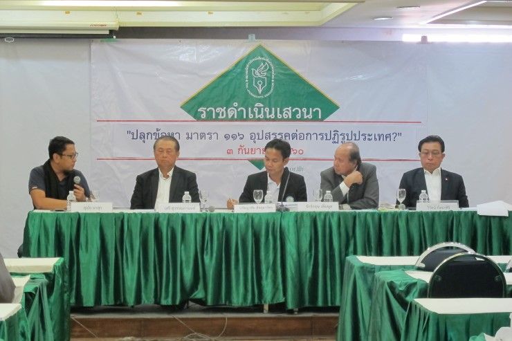 หมายเหตุ : สมาคมนักข่าวนักหนังสือพิมพ์แห่งประเทศไทย ถนนสามเสน สมาคมนักข่าวฯ จัดกิจกรรมราชดำเนินเสวนา หัวข้อ “ปลุกข้อหา มาตรา 116 อุปสรรคต่อการปฏิรูปประเทศ?” โดยเนื้อหาสาระสำคัญที่น่าสนใจ ดังนี้