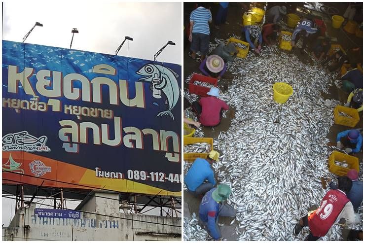 บรรจง นะแส นายกสมาคมรักษ์ทะเลไทย ไขข้อข้องใจที่มาที่ไปป้ายโฆษณารณรงค์หยุดกินลูกปลาทูว่า หลังพบว่ามีการทำประมงแบบทำลายล้างได้สร้างผลเสียต่อการหาปลาทูอย่างหนัก โดยเฉพาะการทำประมง 2 แบบ คือ 1.การทำประมงแบบใช้แสงไฟ หรือเรือปั่นไฟ และ 2.การทำประมงแบบอวนลาก ซึ่งถือเป็นตัวทำลายลูกปลาทูอย่างมาก ในปัจจุบันยังเป็นปัญหาที่แก้ไขยังไม่ได้