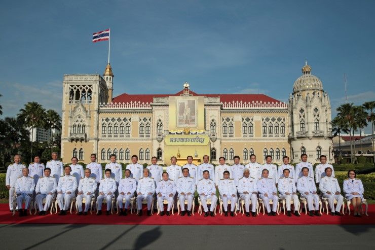 แสงระยิบระยับที่สะท้อนแดดจากแหวนเพชรเม็ดงามของ พล.อ.ประวิตร วงษ์สุวรรณ รองนายกรัฐมนตรีและ รมว.กลาโหม เมื่อครั้งถ่ายรูปคณะรัฐมนตรีใหม่ ครม.ประยุทธ์ 5 ที่สนามหญ้า หน้าตึกไทยคู่ฟ้า