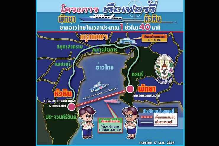 กรมเจ้าท่าเตรียมเปิดเส้นทางขนส่งผู้โดยสาร โดยเรือเฟอร์รี่ข้ามอ่าวไทยระหว่าง พัทยา-หัวหิน เริ่มเดือนม.ค.ปี60