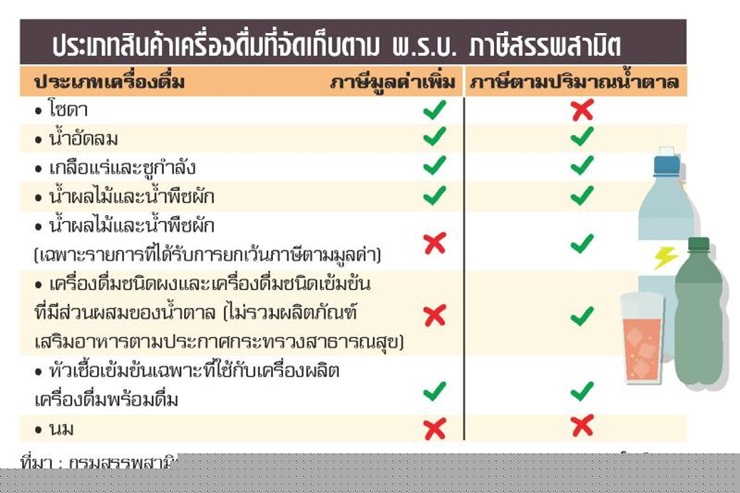 อีกไม่ถึง 3 เดือนอุตสาหกรรมเครื่องดื่มของไทยก็จะต้องอยู่ภายใต้กรอบการจัดเก็บภาษีรูปแบบใหม่ของ กรมสรรพสามิต ซึ่งจะบวกในส่วน ของภาษีน้ำหวานเข้าไปด้วย ส่งผลให้ผู้ประกอบการในอุตสาหกรรมเครื่องดื่มต่างร้อนๆ หนาวๆ โดยเฉพาะกลุ่มเครื่องดื่มที่มีปริมาณน้ำตาลมาก เนื่องจากต้องเสียภาษีเพิ่มขึ้น หากไม่ลดปริมาณน้ำตาลในเครื่องดื่มลงให้ต่ำกว่า 10% หรือ 10 กรัมต่อปริมาณเครื่องดื่ม 100 มล.