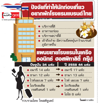 แต่ล่าสุด ออนิกซ์ ฮอสพิทาลิตี้ กรุ๊ป บริษัทที่บริหารแบรนด์ชั้นนำของไทยอย่าง อมารี ก็เตรียมผลักดันแบรนด์อมารี รวมถึงแบรนด์อื่นบุกตลาดต่างประเทศเช่นกัน ถือเป็นปรากฏการณ์โรงแรมยักษ์พันธุ์ไทยบุกตลาดต่างประเทศที่น่าจับตามาก