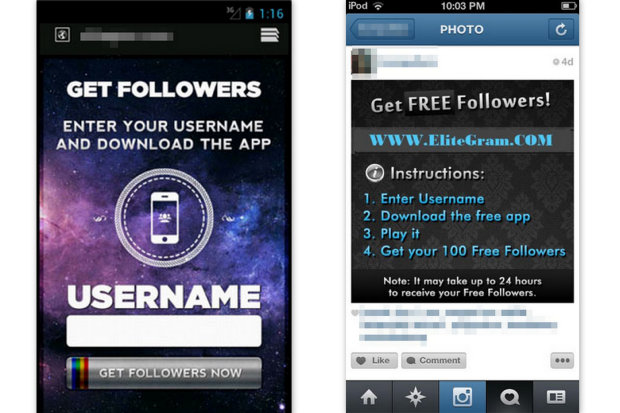 ปัจจุบันจะพบว่ามีผู้ติดตามที่สนใจอยากจะติดตาม (Follow) เราในอินสตาแกรม ซึ่งถือเป็นเรื่องปกติที่อินสตาแกรม แอกเคาต์ของคุณจะต้องมีการตั้งค่าเป็น “ส่วนตัว” (Private) และในขณะที่ตรวจสอบการร้องขอเหล่านี้ นักวิจัยระบบรักษาความปลอดภัยของเทรนด์ไมโครพบบางสิ่งที่|ผิดปกติในหลายๆ รายชื่อที่ติดต่อเข้ามา เราจึงเข้าไปตรวจสอบหน้าเพจของอินสตาแกรม แอกเคาต์เหล่านั้น และพบว่าพวกเขาเหล่านั้นโพสต์รูปภาพที่มีข้อความว่า “Get Free Followers!” โพสต์นี้ทำให้เรานึกถึงพินเทอเรสต์ (Pinterest) ที่เคยตรวจพบว่ามีการหลอกลวงในรูปแบบรายการโปรโมชันฟรี และเทรนด์ไมโครเคยบล็อกไปเมื่อเร็วๆ นี้