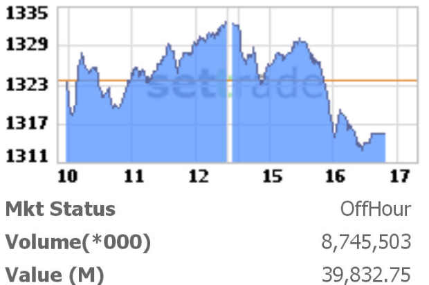 ตลาดหุ้นไทยวันที่ 3 ก.ย. ผันผวนอย่างหนัก ช่วงเช้าปรับตัวขึ้นตามตลาดหุ้นภูมิภาค แต่ช่วงบ่ายกลับปิดตลาดในแดนลบสะท้อนความเปราะบางของตลาดหุ้น ปิดตลาดวันที่ 3 ก.ย. ที่ 1,315.41 จุด ลดลง 8.29 จุด หรือลดลง 0.63% ด้วยมูลค่าการซื้อขาย 39,842.55 ล้านบาท ดัชนีเคลื่อนไหวระหว่าง 1,312.63-1,334.15 จุด