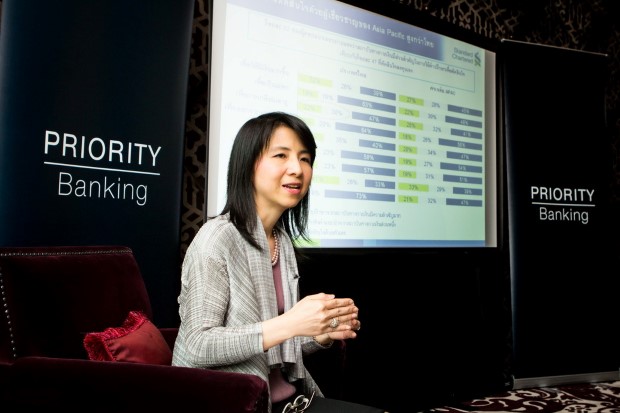 นางปรัศนีย์ สุระเสถียร ผู้ช่วยกรรมการผู้จัดการใหญ่ ฝ่ายบริหารการเงินการลงทุน บริการธนาคารพิเศษและธนาคารระหว่างประเทศ สายงานบุคคลธนกิจ ธนาคารสแตนดาร์ดชาร์เตอร์ด (ไทย) เปิดเผยว่า ธนาคารสแตนดาร์ดชาร์เตอร์ด จัดทำแบบสำรวจ The Future Priority Report เพื่อศึกษาถึงพฤติกรรม กระบวนการตัดสินใจ และแนวโน้มความต้องการทางการเงินของกลุ่มลูกค้าธนาคารพิเศษ โดยการศึกษาในครั้งนี้ได้ทำการสำรวจในกลุ่มประชากร 2,700 คนใน 9 ประเทศทวีปเอเชีย ได้แก่ จีน ฮ่องกง อินเดีย อินโดนีเซีย มาเลเซีย สิงคโปร์ เกาหลีใต้ ไต้หวัน และไทย