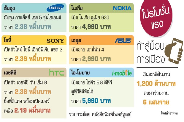 ค่ายผู้ผลิตโทรศัพท์มือถืองัดโปรโมชั่นแข่งเดือดงานไทยแลนด์โมบาย เอ็กซ์โป หวังชิงยอดขายสู้มรสุมการเมือง
