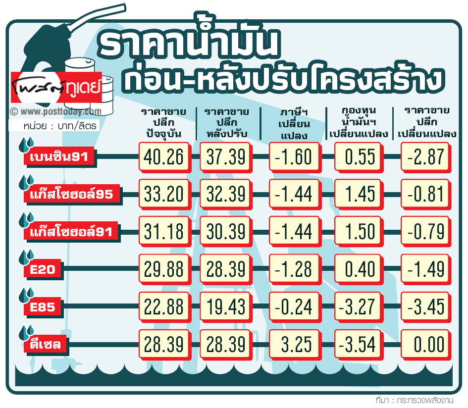 ราคาน้ำมัน ก่อน-หลังปรับโครงสร้าง