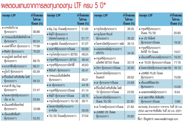 สำรวจ LTF ครบ 5 ปีกำไรอู้ฟู่ ผลตอบแทนสูงสุด 90.86% บลจ.เตรียมเงินรับการไถ่ถอน
