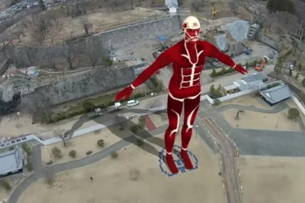 ทั้งนี้เหล่าสาวกการ์ตูนคงสงสัยว่าหากไททันมีจริงบนโลกนี้จะลักษณะใหญ่โตอย่างไร ศิลปินท่านหนึ่งอย่าง 'Komo C' จึงได้จัดทำให้ไททันปรากฏขึ้นจริงๆ ในเมืองในประเทศญี่ปุ่น โดยใช้วิธีการสร้าง AR หรือ Augmented Reality ในการสร้างภาพจำลอง 3 มิติขึ้นบนพื้น และให้เครื่องโดรนที่ติดกล้องบันทึกภาพจิ๋วบินขึ้นไปเพื่อสแกนสัญลักษณะ AR จากบนท้องฟ้าจึงปรากฏภาพไททันตัวสูงใหญ่ 100 เมตรขึ้นในคลิปวีดีโอ ซึ่งมาคราวนี้เจ้าไททันไม่ได้ยืนเฉยๆ อย่างเดียว แต่ยังออกสเต็ปแดนซ์อีกด้วย มาดูกันดีกว่าว่าภาพจะออกมาเป็นอย่างไร