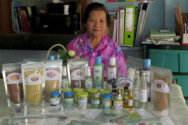 “ปัจจุบันสินค้าของเกร็ดไพรมีทั้งหมดแบ่งออกเป็น 6 ประเภท อย่างแรกจะเป็นกลุ่มยาลูกกลอน แชมพูสระผม เครื่องดื่มสำเร็จรูป ชาสมุนไพรต่างๆ และน้ำมันสมุนไพร และสมุนไพรแคปซูล โดยสมุนไพรทุกชนิดรวมกว่า 80% จะทำการปลูกโดยชาวบ้านในพื้นที่” ป้าจำลอง เล่าถึงธุรกิจสมุนไพรเกร็ดไพร