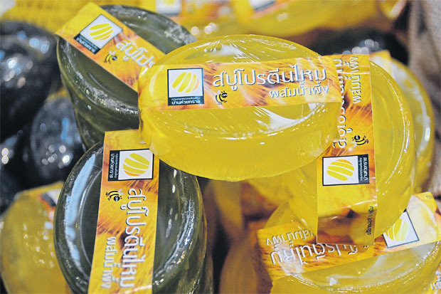 “เราแปรรูปจากไหม ปลูกหม่อนเลี้ยงไหมเองบนพื้นที่ 29 ไร่ แปลงรวม และมีแปลงส่วนตัวของสมาชิกอีกคนละหลายไร่ เลี้ยงตัวไหม เอาไหมมาทอผ้าเป็นผ้าไหมใช้สีธรรมชาติ ย้อมสีไหมด้วยวัสดุจากธรรมชาติ เอามาแปรรูป เป็นสบู่ก้อนเล็กรูปกุหลาบ สบู่โปรตีนไหม โลชั่น สบู่เหลว ไหมขัดผิว โลชั่นบำรุงผิว”