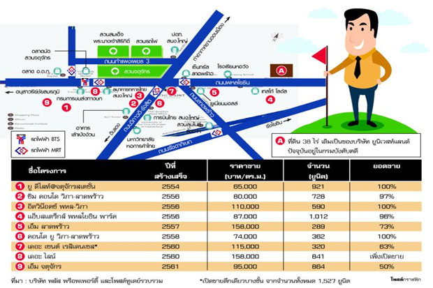 จากการสำรวจของบริษัท พลัส พร็อพเพอร์ตี้ พบว่าระยะทางระหว่างโครงการกับสถานีรถไฟฟ้ามีส่วนสำคัญมากในการกำหนดราคา ยิ่งใกล้สถานีรถไฟฟ้าและสวนสาธารณะเท่าไหร่ราคาก็จะยิ่งแพงขึ้นเท่านั้น โดยโครงการใหม่ที่ใกล้สถานีรถไฟฟ้าบริเวณใกล้ 5 แยกลาดพร้าวหรือหมอชิต ราคาขายแตะ 1.5-2 แสนบาท/ตร.ม. แต่ถ้าเลยบริเวณนี้ออกไปหน่อย เช่น บริเวณเอ็มอาร์ที ลาดพร้าว ปัจจุบันมี 2 โครงการที่อยู่ระหว่างขาย คือ แชปเตอร์วัน มิดทาวน์ กับ วิสซ์ดอม อเวนิว รัชดา-ลาดพร้าว ราคาขายของห้องชุดที่เหลืออยู่ เฉลี่ย 1.3-1.5 แสนบาท/ตร.ม.