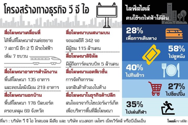 กวิน กาญจนพาสน์ ประธานคณะกรรมการบริหาร บริษัท วี จี ไอ โกลบอล มีเดีย ผู้ดำเนินธุรกิจให้บริการสื่อโฆษณานอกบ้าน เปิดเผยว่า ทิศทางการใช้สื่อโฆษณาทางทีวีของเจ้าของสินค้ากำลังอยู่ในภาวะขาลง จากปัจจุบันมีมูลค่า 6 หมื่นล้านบาท และโอกาสที่สื่อโฆษณานอกบ้านมูลค่า 1 หมื่นล้านบาท มีแนวโน้มที่เติบโตมากขึ้น โดยเฉพาะสื่อโฆษณาเคลื่อนที่ และสื่อดิจิทัล มีทิศทางเติบโตเพิ่มขึ้น