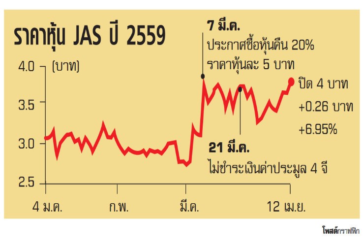 เล่นหุ้น JAS หนักราคาพุ่งสูงสุดรอบ 1 ปี โนมูระพัฒนสินแนะนำซื้อ ให้ราคาเป้าหมาย 5.60 บาท