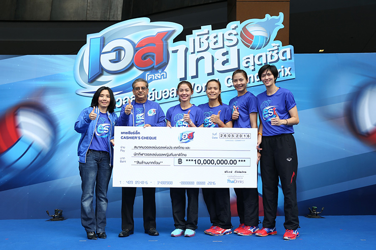 นายวิเวก ชาห์บรา กรรมการผู้อานวยการ บริษัท ไทยดริ้งค์ จากัด เปิดเผยว่า เอส ได้เริ่มสนับสนุนกีฬาวอลเลย์บอลมาตั้งแต่ปี 2558 และต่อเนื่องถึงปี 2559 เป็นระยะเวลา 2 ปีโดยมีงบประมาณในการสนับสนุนรวม 50 ล้านบาท เพื่อใช้ในการสนับสนุนการพัฒนากีฬาวอลเลย์บอลไทยและเสริมแกร่งศักยภาพของนักวอลเลย์บอลทีมชาติไทยให้ทัดเทียมทีมระดับโลก ซึ่งเราภูมิใจที่โลโก้เอส ได้ขึ้นไปอยู่บนเสื้อทีมชาติไทย ได้เป็นส่วนหนึ่งในการแสดงศักยภาพของคนไทยให้ชาวโลกเห็น