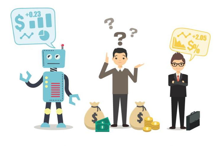 หุ่นยนต์ : เพราะเป็นระบบอัตโนมัติ และไม่ได้ใช้คนในกระบวนการให้บริการ ทำให้สามารถให้บริการด้วยต้นทุนที่ต่ำกว่าการบริการของที่ปรึกษาทางการเงิน