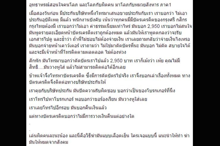 นายจิตวุฒิ ศศิบุตร นายกสมาคมนายหน้าประกันภัย เปิดเผยว่า ตามที่มีข่าวในสังคมออนไลน์ เรื่อง อัยการถูกหลอกขายประกันทางโทรศัพท์ และตัดเงินจากบัตรเครดิตไปโดยไม่ได้รับอนุญาตนั้น ทางสมาคมฯ ไม่ได้นิ่งนอนใจ และได้พยายามหาข้อมูลจากแหล่งข่าวต่างๆอย่างเต็มความสามารถ เพราะอาจส่งผลกระทบโดยตรงต่อธุรกิจช่องทางนายหน้า หรือโบรกเกอร์ประกันภัย