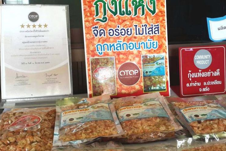 ด้าน เยาวรัตน์ หนูหมาด กรรมการฝ่ายผลิต กลุ่มแม่บ้านเกษตรกรทุ่งรวงทอง กล่าวว่า เทคนิคการทำกุ้งแห้งให้อร่อยนั้นเริ่มตั้งแต่การนำกุ้งสดที่จับจากท้องทะเลริมฝั่งอันดามันมาล้างน้ำสะอาด 4-5 ครั้ง จากนั้นต้มน้ำที่ผสมเกลือลงไปให้เดือดจัด ก่อนนำกุ้งสดใส่ทิ้งไว้ประมาณ 20-25 นาที เมื่อสุกดีแล้วให้นำกุ้งมากรองน้ำออก แล้วนำไปตากในห้องพลังงานแสงอาทิตย์ที่จะช่วยให้กุ้งหอมแบบธรรมชาติ