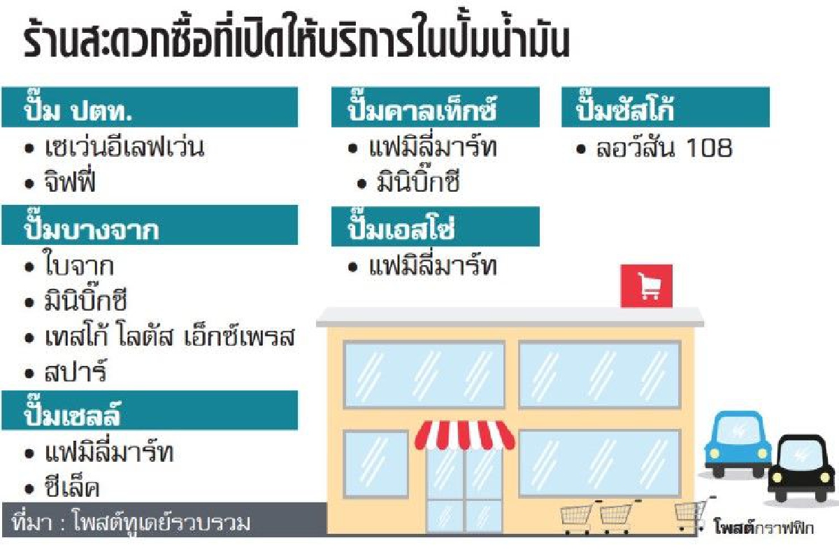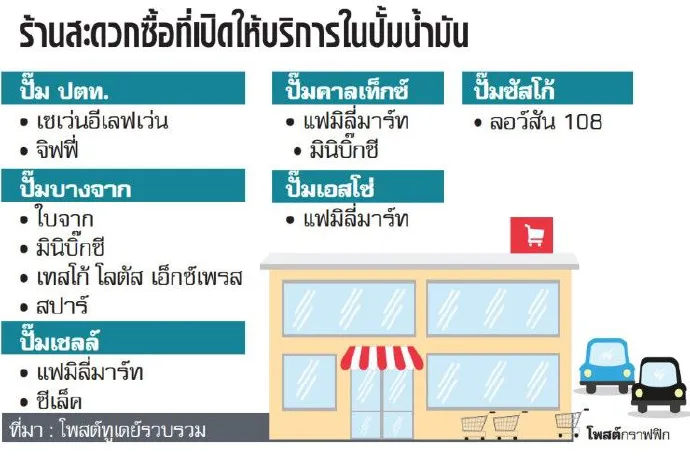 ร้านสะดวกซื้อเริ่มเข้าไปเปิดศึกชิงพื้นที่ค้าปลีกในปั๊มน้ำมัน เพื่อขยายสาขากันมากขึ้น