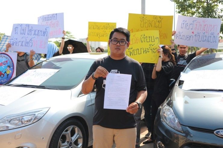 เมื่อวันที่ 23 ม.ค. เวลา 09.30 น. ที่สำนักงานคณะกรรมการคุ้มครองผู้บริโภค (สคบ.) นายพัฒนพงศ์ อ่องแก้ว แกนนำ "กลุ่มเหยื่อรถยนต์" นำผู้ประสบปัญหาจากการใช้รถยนต์ฟอร์ด รุ่นเฟียสต้า และรุ่นโฟกัส ที่รวมตัวกันกว่า 250 คน เข้าร้องเรียนต่อ สคบ. ให้ช่วยเรียกร้องความรับผิดชอบจาก บริษัท ฟอร์ด เซลส์ แอนด์ เซอร์วิส (ประเทศไทย) จำกัด กรณีบริษัทจำหน่ายสินค้ารถยนต์ไม่ได้มาตรฐาน มีปัญหาบกพร่องร้ายแรง เป็นอันตรายต่อผู้บริโภค