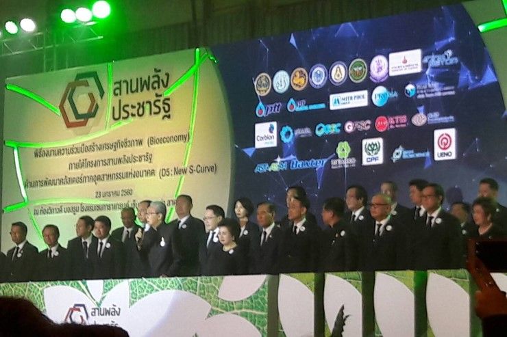 เมื่อวันที่ 23 ม.ค. 2560 ที่โรงแรมเซนทารา แกรนด์ เซ็นทรัล ลาดพร้าว นายสมคิด จาตุศรีพิทักษ์ รองนายกรัฐมนตรี เป็นประธานการลงนามความเข้าใจระหว่างหน่วยงานภาครัฐ เอกชน และสถาบันการศึกษาและวิจัย รวม 23 หน่วยงาน จัดโดยคณะทำงานด้านการพัฒนาคลัสเตอร์ภาคอุตสาหกรรมแห่งอนาคต(New S-Curve) เพื่อเป็นจุดเริ่มต้นในการขับเคลื่อนการลงทุนด้านเศรษฐกิจชีวภาพของประเทศไทย