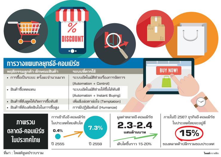 ปัจจุบันผู้ประกอบการไทยเริ่มหันมาให้ความสนใจลงทุนทำธุรกิจอี-คอมเมิร์ซมากขึ้น เช่นเดียวกับกลุ่มสินค้าอุปโภคบริโภค หรือเอฟเอ็มซีจี (Fast Moving Consumer Goods) เนื่องจากแนวโน้มกำลังมา ซึ่งบริษัทก็ได้เตรียมความพร้อมรับมือ ด้วยการตั้งทีมอี-คอมเมิร์ซเข้ามาดูแลการทำตลาดในรูปแบบดังกล่าว