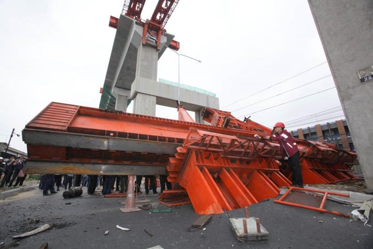 สำหรับอุบัติเหตุที่เกิดขึ้น จาก การตรวจสอบของสภาวิศวกรในเบื้องต้น มีข้อสังเกต 4 ประเด็น คือ 1.การออกแบบการยึดโครงสร้างเหล็กเข้ากับหัวเสา ถูกต้องหรือไม่ เนื่องจากพบการขาดของเหล็ก PT bar 3 เส้น ระหว่างการเคลื่อนที่ของเครน 2.การก่อสร้างถูกต้องหรือไม่ 3.มีการกำหนดระบบป้องกันกรณีอื่นเมื่อ PT bar ขาดหรือไม่ คือระบบสำรองที่จะยึดโครงเหล็กไว้ไม่ให้ร่วงลงมา 4.วัสดุเช่น PT bar ได้มาตรฐานและมีกำลังรับน้ำหนักตามที่ออกแบบหรือไม่
