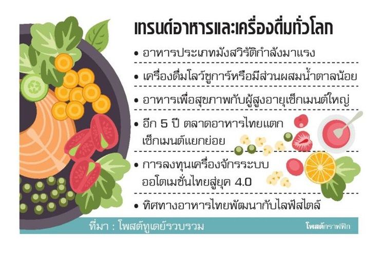 ผู้ประกอบการธุรกิจอาหารไทยชูฟู้ดอินโนเวชั่น บุกตลาดอาหารและเครื่องดื่มระดับโลก จับยุค 4.0 ควบสังคมสูงวัยเร่งพัฒนาสินค้านวัตกรรมใหม่รองรับ