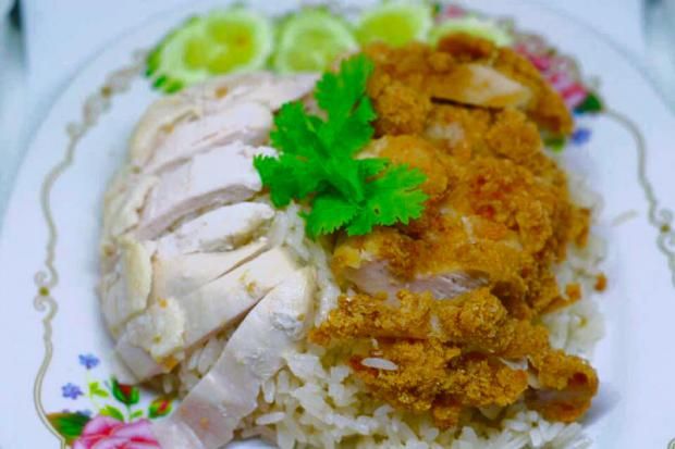 มองดูในจานเห็นเนื้อไก่ชิ้นหนาพอประมาณ มีความนุ่มในเนื้อไก่รสชาติถูกปาก สมคำร่ำลือไก่ต้มที่ทำด้วยกรรมวิธี ซูส์-วีด ส่วนไก่ทอดนั้นหนังกรอบอร่อยได้รสชาติ เนื้อก็ยังคงความนุ่มชวน รับประทานไม่แพ้กัน ข้าวมันสีอมเหลืองนิดๆ ส่งกลิ่นหอมชวนรับประทาน คล้ายๆ ข้าวมันไก่สูตรไหหลำ