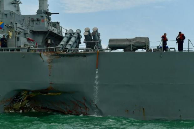 แต่ยังไม่ทันจะเทียบท่าที่สิงคโปร์ สหรัฐก็ต้องพบกับ "ความด่างพร้อยซ้ำสอง" เมื่อเรือพิฆาตลำนี้พุ่งชนเข้ากับเรือบรรทุกน้ำมันลิเบียในแถบช่องแคบมะละกา ที่มีการเดินเรือหนาแน่นที่สุดแห่งหนึ่งในโลกไปเมื่อวานนี้ ซ้ำรอยเรือพิฆาต "ยูเอสเอส ฟิตเจอรัลด์" ที่ชนเข้ากับเรือสินค้าฟิลิปปินส์ในน่านน้ำญี่ปุ่น เมื่อกลางเดือน มิ.ย.ที่ผ่านมา แต่ยังดีกว่าเมื่อครั้งก่อน โดยในครั้งนั้นเรือฟิตเจอร์รัลด์เสียหายหนักถึงขั้นเกือบอับปางทีเดียว เพราะเรือบรรทุกสินค้าหรือบรรทุกน้ำมันพวกนี้ เป็นเรือขนาดใหญ่กว่าที่มีระวางขับน้ำต่างกันถึงราว 3 เท่าทีเดียว