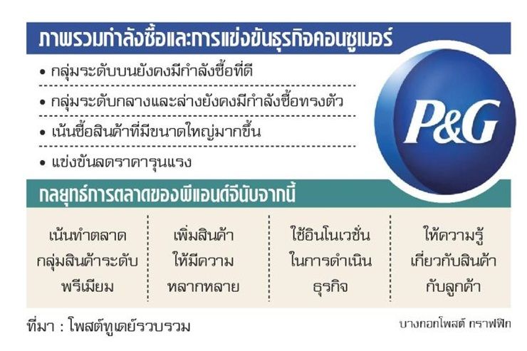 ราฟฟี่ ฟาร์ฮาโด กรรมการ ผู้จัดการ บริษัท พรอคเตอร์ แอนด์ แกมเบิล (ประเทศไทย) หรือพีแอนด์จี กล่าวว่า ภาพรวมการแข่งขันของธุรกิจคอนซูเมอร์ในขณะนี้ยังคงแข่งขันราคากันรุนแรง แต่ในส่วนของบริษัทไม่มีแผนจะไปปรับลดราคาอยู่ในระดับ ดังกล่าวเพื่อกระตุ้นยอดขาย เนื่องจากสินค้าของบริษัทที่นำมาจำหน่ายส่วนใหญ่เป็นสินค้าพรีเมียม เน้นเจาะกลุ่มลูกค้าระดับบนเป็นหลัก จึงทำให้ การดำเนินธุรกิจไม่ได้รับผลกระทบ จากปัจจัยลบกำลังซื้อของผู้บริโภคมากนัก