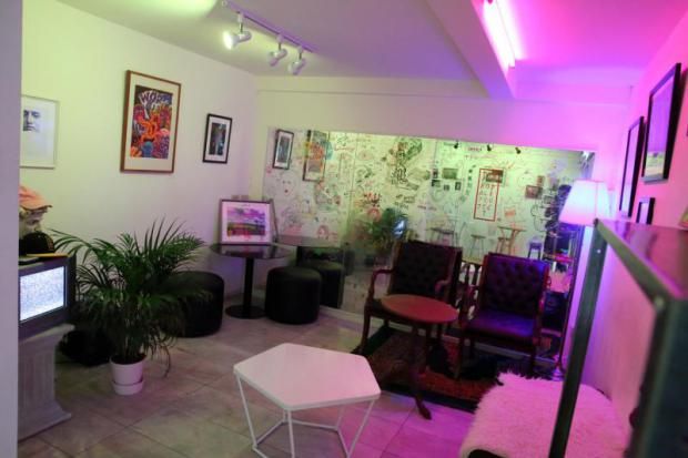 การตกแต่งในสไตล์อยากวางอะไรไว้ตรงไหนก็วาง อย่าง ทีวีจอเสีย รูปปั้นยุคกรีก หรืออยากจะเปิดไฟนีออนที่ปรับเปลี่ยนสีไปตามวัน ไฟดิสโก้ก็โอเค หรือใครอยากจะเพนต์กระจกก็หยิบปากกามาละเลงกันได้เลย ทั้งโต๊ะ ทั้งเก้าอี้ ก็แล้วแต่เจ้าของร้านเขาจะหามาวางกัน ชอบแบบไหน มุมไหน ก็นั่งกันได้เลย