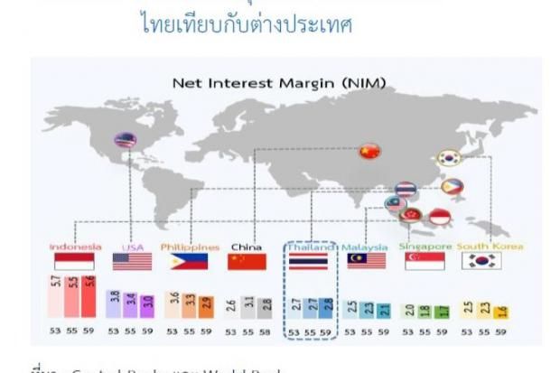 NIM ของระบบธนาคารพาณิชย์ไทยในช่วง 5 ปีที่ผ่านมาค่อนข้างทรงตัว อยู่ที่ประมาณร้อยละ 2.7-2.8 และหากเทียบกับประเทศอื่นๆ โดยเฉพาะประเทศเพื่อนบ้าน NIM ของไทยจะอยู่ในระดับกลางๆ ซึ่งธนาคารพาณิชย์ที่ให้บริการกับธุรกิจขนาดกลางและเล็ก (SMEs) รวมถึงรายย่อย มีต้นทุนการเปิดสาขาและการให้ บริการ ตลอดจนความเสี่ยงจากสินเชื่อที่สูงกว่าธนาคารที่ให้บริการลูกค้าธุรกิจขนาดใหญ่