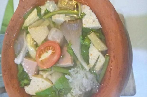 วัตถุดิบที่ใช้แทนเนื้อสัตว์ มีเต้าหู้ทรงเครื่อง ลูกชิ้นเห็ดหอม แฮมเจ เห็ดหูหนูขาว เต้าหู้ธรรมดา ฟองเต้าหู้ ขณะที่ผักมีกวางตุ้ง กะหล่ำปลี ผักกาดขาว ใบโหระพา ผักชีฝรั่ง แครอต และเห็ดต่างๆ เช่น ออรินจิ เป็นต้น ส่วนน้ำซุปใช้น้ำซุปก๋วยเตี๋ยวที่ทำเป็นน้ำสต๊อกไว้ ต้มข่า ตะไคร้ ใบมะกรูดแต่ไม่ใส่ พริกสดเพราะความเผ็ดจะอยู่ในน้ำจิ้มนั่นเอง