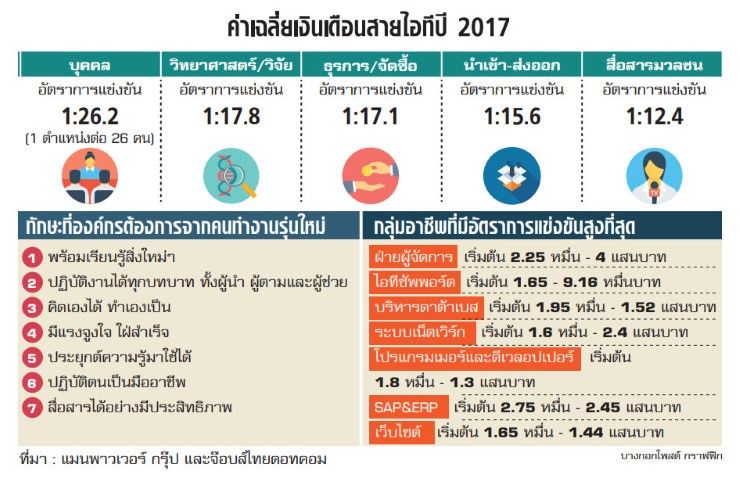 ด้านแมนพาวเวอร์กรุ๊ป ใช้เวลากว่า 3 ปี ในการเจาะลึกสายอาชีพที่กำลังมาแรงและเป็นที่ต้องการของตลาด พบว่าสายงานไอทีมีความโดดเด่นชัดเจนขึ้น ไม่ว่าจะเป็นตำแหน่งพนักงานไอทีทั่วไปจนถึงฝ่ายบริหาร ก็ล้วนเป็นที่ต้องการทั้งสิ้น