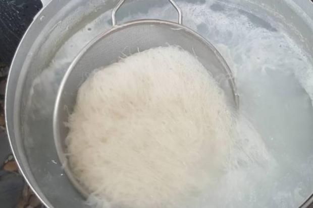 สำหรับเส้นขนมจีน จะใช้เป็นแป้งข้าวเจ้าคุณภาพดีจากโรงงาน นำมาต้มในน้ำเดือด 40 นาที ปล่อยให้เย็นแล้วใส่เครื่องปั่นอีกชั่วโมงครึ่งเพื่อให้เหนียวหนึบพอดี จากนั้นใส่ไว้ในถัง เมื่อลูกค้าสั่งก็จะตักแป้งข้าวปุ้นหรือแป้งขนมจีนใส่ตะแกรงที่เป็นรูแล้วบีบแป้งลงในหม้อน้ำเดือด เมื่อเส้นลอยขึ้นก็ใช้กระชอนตักออกมาแช่น้ำเย็นทันที แล้วจับเป็นหัวตามขนาดที่ลูกค้าสั่ง ก็จะได้เส้นข้าวปุ้นหรือขนมจีนที่สดใหม่เหนียวนุ่ม ปัจจุบันขายมากว่า 6 ปีแล้ว ล่าสุดก็ได้ขยายสาขาในตัวเมืองเพิ่มอีก 1 สาขาด้วย