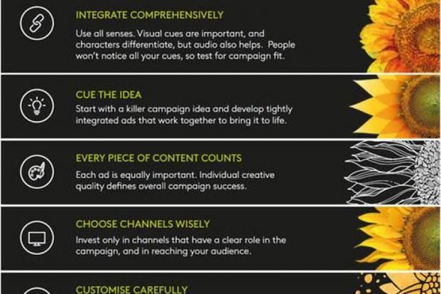 2.ทำโฆษณาย่อยในแคมเปญใหญ่ให้น่าสนใจ จากการทดสอบเกี่ยวกับการใช้สื่อหลากช่องทาง พบว่า โดยเฉลี่ยแล้วคนจะจดจำแคมเปญได้จากองค์ประกอบทั้งหมด ไม่ใช่เฉพาะในส่วนที่ดีหรือแย่ที่สุด เพราะฉะนั้นทุกส่วนล้วนมีความสำคัญในการทำให้แคมเปญประสบความสำเร็จและสร้างแบรนด์ให้เป็นที่จดจำ