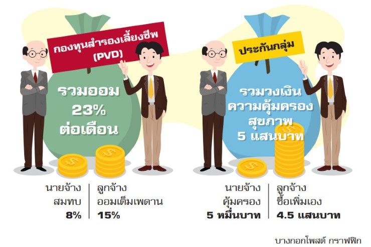 พนักงานบริษัทอย่างเราจะมีกองทุนสำรองเลี้ยงชีพ (PVD) ที่กฎหมายบังคับให้นายจ้างและ ลูกจ้างต้องสมทบเงินเข้ากองทุนสำรองเลี้ยงชีพตั้งแต่ 2-15% เพื่อสร้างสวัสดิการเงินออมสำหรับการเกษียณ โดยที่ไม่ต้องจ่ายค่าธรรมเนียมในการลงทุนเพิ่ม