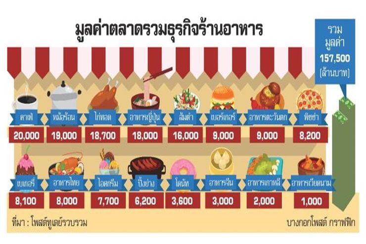 ณัฐ กล่าวอีกว่า ในส่วนของธุรกิจร้านอาหารใหม่ๆ บริษัทก็ให้ความสนใจเช่นกัน โดยเฉพาะธุรกิจร้านกาแฟและเบเกอรี่ เนื่องจากธุรกิจดังกล่าวมีมูลค่าตลาดมากกว่า 2 หมื่นล้านบาท เช่นเดียวกับธุรกิจร้านอาหารแบบหม้อไฟ ปัจจุบันมีมูลค่ากว่า 1.9 หมื่นล้านบาท และร้านอาหารประเภทส้มตำ ซึ่งปัจจุบันมีมูลค่ากว่า 1.6 หมื่นล้านบาท